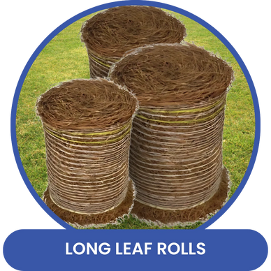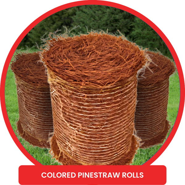 These rolls provide the same high-quality longleaf pine straw without color treatment. Each roll covers about 140 square feet and is equivalent to 2.5 to 3 square bales, weighing approximately 28-32 pounds. They are designed for easy and efficient spreading.