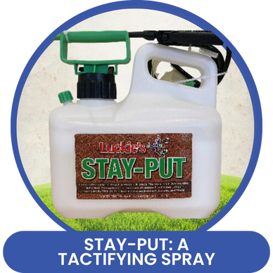 “StayPut" is our amazing product that serves as a tactifying spray, keeping your pinestraw firmly in place, protecting it from wind and rain, and keeping your edges straight and clean.